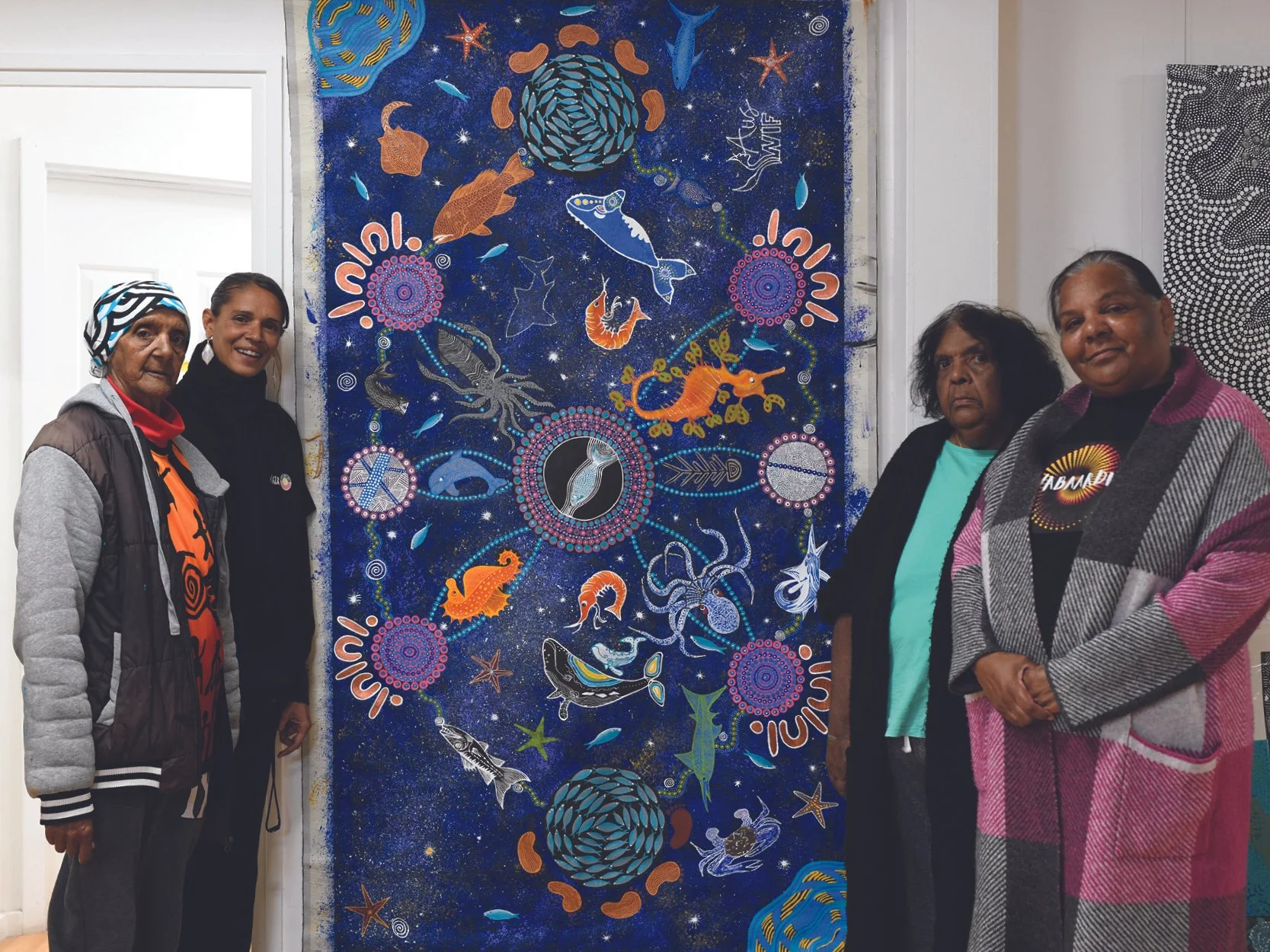 After my mum’s passing, I found myself on a path that seemed to guide me to Ceduna. It became a place of deep acceptance, not only for my mum but for me as well. It was the emotional pull of this sacred place, that I felt. In my heart, I knew I needed to reach out to Aunty Jo—a woman of profound wisdom and creativity had told me years earlier that when the time was right she would sit and paint my song line and the time was now … When I asked her to help me paint my story, what started as a personal healing process grew into something far greater: a shared painting of healing.